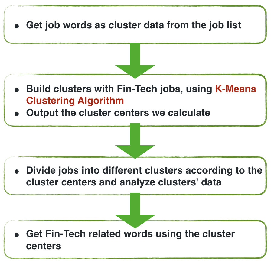 According to this graph, we obtained the job keywords in the four areas of fintech. Then we cross check job title of every records from the raw data.